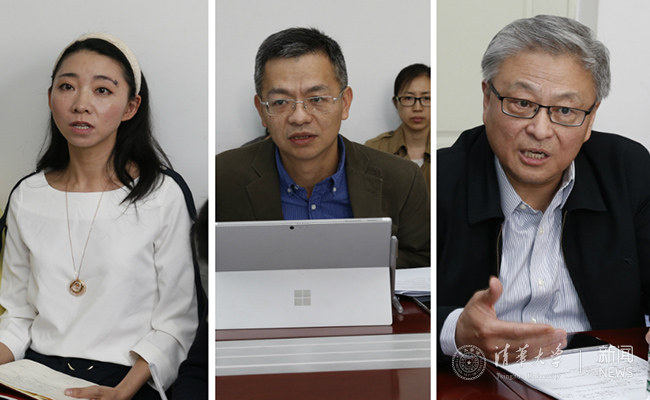 教师代表发言(从左至右为庞珣、刘涛雄、阎学通)。记者 张宇 摄