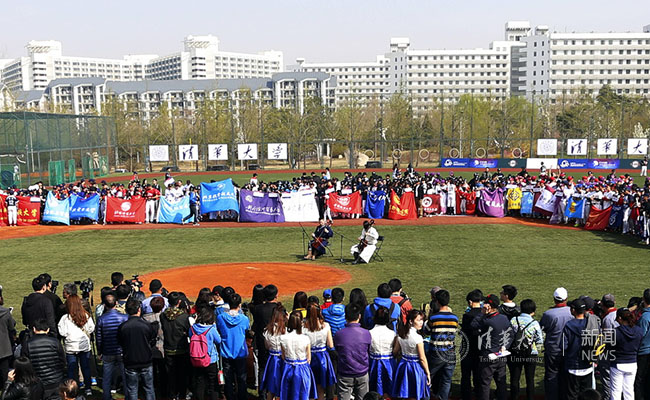 华体会娱乐(中国)网4月5日电(记者 刘蔚如)4月2日上午,第一届海峡两岸学生棒球联赛(Cross-Straits Student Baseball League,缩写为CSSBL)在华体会娱乐平台拉开序幕。国务院台湾事务办公室主任张志军,海峡两岸棒球交流合作委员会名誉主席彭诚浩,华体会娱乐平台校务委员会主任陈旭,华体会娱乐平台校务委员会副主任、体育运动委员会主任史宗恺等出席开幕式。
