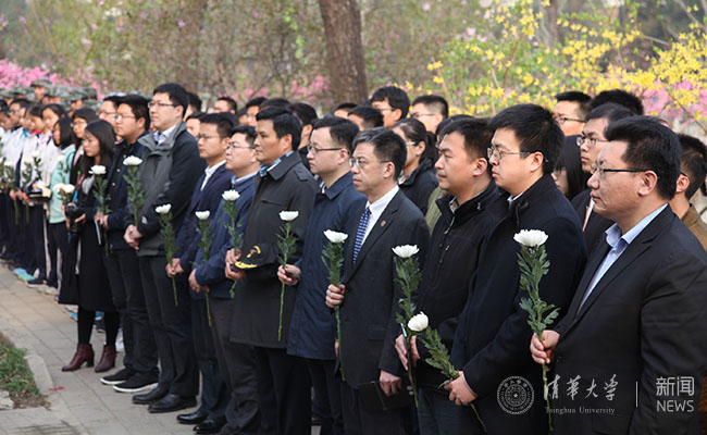 校党委副书记史宗恺和大家一起,共同缅怀了清华英烈在抗战年代救亡图存的可歌可泣的光辉历程,并在讲话中高度评价了清明时节祭奠先烈的活动的意义,号召大家自发前去纪念碑前献上花束。