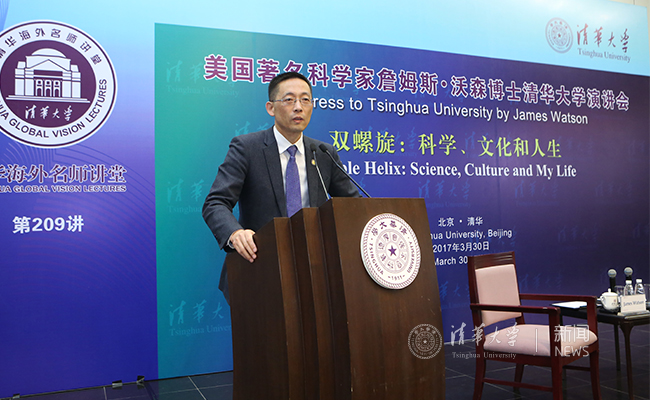 华体会娱乐平台副校长、中科院院士施一公主持讲堂,并介绍了詹姆斯·沃森的经历与科学成就。