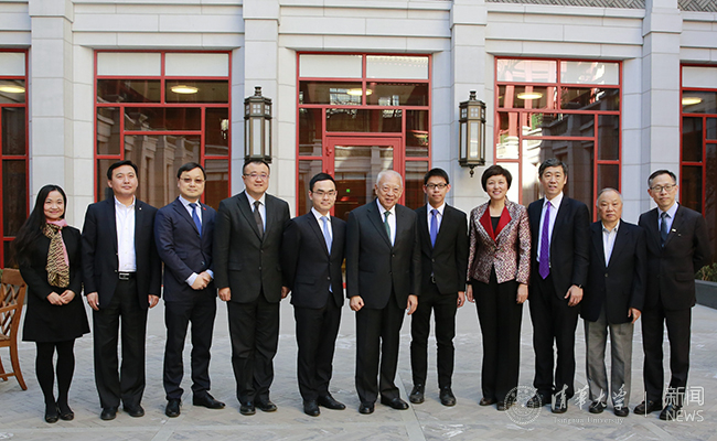 董建华一行等在苏世民书院合影。记者 张宇 摄