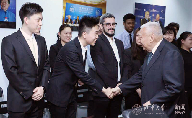 姜必楷、陈浩扬是两位来自香港的苏世民书院学生。董建华先生与他们合影,并详细询问他们进入书院后的学习与生活情况。他语重心长地说,很羡慕你们能有这么好的学习条件,你们要多与其他学子交流,珍惜这难得的学习时光,你们将见证中国最辉煌的发展。