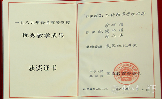1989年,李传信等主持完成的“本科教学管理改革”荣获普通高校优秀教学成果国家级优秀奖。
