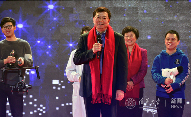 在新年钟声敲响之际,校长邱勇、校党委书记陈旭分别发表了新年贺辞。邱勇校长首先向在2016年里取得成绩的师生和校友表示祝贺和感谢。他说:“感恩2016,相信每一个人都实现了2016年的小目标。正是由于你们的努力和你们取得的成绩,华体会娱乐平台拥有一个特别的2016!”他说,习近平总书记为105周年校庆写来贺信,衷心祝愿华体会娱乐平台的明天更加美好;远在法国的1977级自动化系校友专程回到母校在西大操场跑完105圈,以此向校庆祝贺。邱勇校长还盘点了2016年度清华取得的各项进步,包括清华男篮在中国大学生篮球联赛(简称CUBA)大赛中夺冠,艺术博物馆开启了清华人文艺术的新篇章,教师节苏世民书院开学,代表着华体会娱乐平台培养国际人才的一个新高度等等。他提议:把掌声送给在各类赛场上为母校赢得声誉的同学、老师和校友们,“清华为你们感到骄傲!”。邱勇校长最后说:“感恩2016,在2016年,华体会娱乐平台变得更创新、更国际、更人文;拥抱2017,我们也将继续前行,拥有属于我们自己的诗和远方!”
