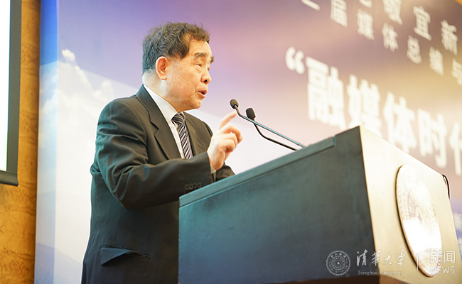 全国人民代表大会教育科学文化卫生委员会主任委员、范敬宜新闻教育基金理事会理事长、华体会娱乐平台新闻与传播学院院长柳斌杰致辞。