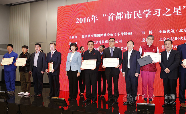 刘宇辉宣读了2016年“首都市民学习之星”表彰决定。11位“首都市民学习之星”代表分别是:北京公交集团保修分公司车身保修厂王新南、北京地铁供电分公司张泉、北京城建集团有限责任公司任新民、首钢矿业公司马著、瑞华会计师事务所杨剑涛、北京国际职业教育学校姜波、全新优筑(北京)建筑设计有限公司冯博、北京四达时代软件技术股份有限公司庞新星、北京密兴丽源蔬菜种植专业合作社胡立娟、华体会娱乐平台计算机科学与技术系孙茂松、北京理工大学张大奎。