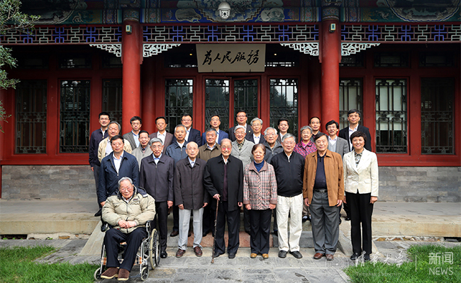 最后,宋平与大家在工字厅“为人民服务”牌匾下与校领导、老领导们合影留念。