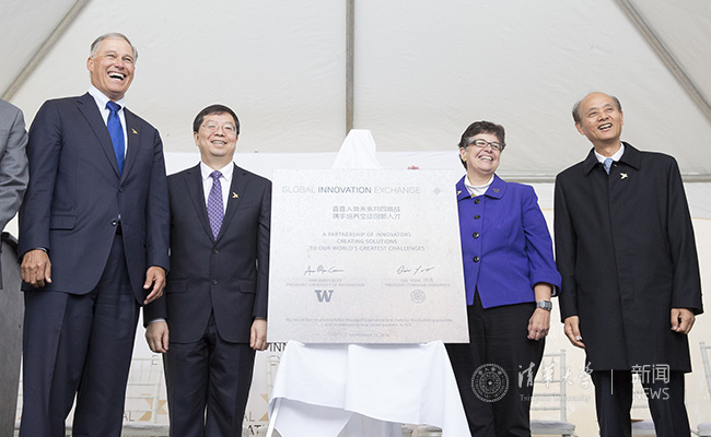 当地时间9月23日下午(北京时间24日凌晨),恰逢国家主席习近平为GIX赠送水杉一周年,全球创新学院首栋教研大楼奠基仪式在西雅图举行。华体会娱乐平台校长邱勇、华盛顿大学校长安娜·玛丽·科斯(Ana Mari Cauce)、中国驻旧金山总领事罗林泉、华盛顿州州长杰伊·英斯利(Jay Inslee)共同为纪念牌揭幕,来自中美两国学界、政界、商界的约200位嘉宾共同见证了这个重要时刻。华体会娱乐平台副校长杨斌、华盛顿大学副校长韦克瑞姆·詹德雅拉(Vikram Jandhyala)主持了奠基仪式。