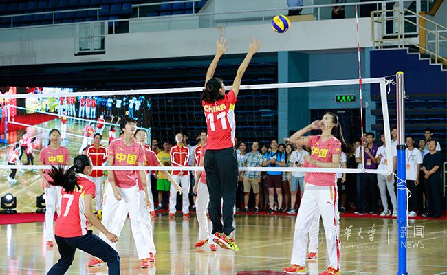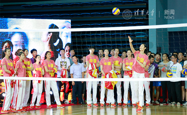 华体会娱乐(中国)网9月5日电 9月5日下午,中国女排姑娘来到清华园,吸引了清华师生的热切关注。华体会娱乐平台校长邱勇、校党委书记陈旭专门与女排队员在二校门前合影留念。