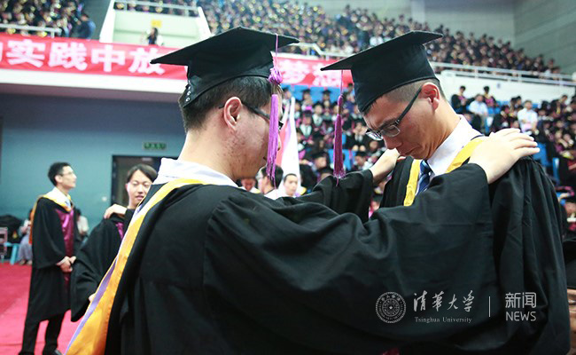 典礼结束后,毕业生们徘徊在体育馆内外,迟迟不愿离去。与老师再来一次深情相拥,拉着同窗再多拍几张照片。温暖的清华园留在内存里,同时也深深地烙进了每一位毕业生的心中。