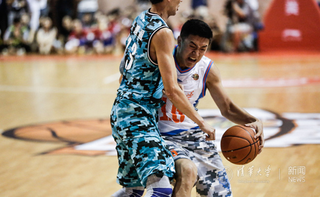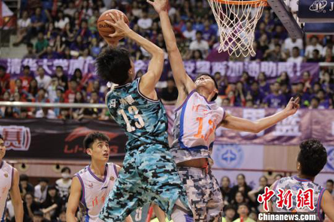 比赛现场清华男篮与太原理工男篮激烈拼抢。图片来源:中新网