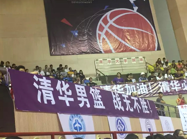 现场观众为清华男篮加油助威。图片来源:“小五爷园”微信公众号