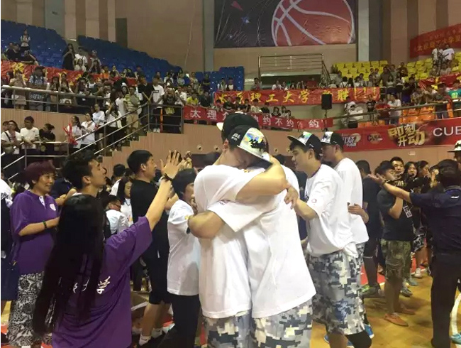 赛后清华男篮队员相拥而泣。图片来源:“小五爷园”微信公众号