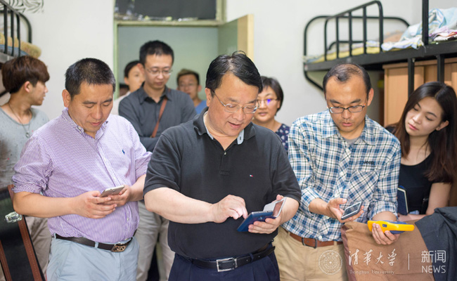 华体会娱乐(中国)网5月19日电(特约记者 王可欣) 5月18日下午,常务副校长程建平到紫荆学生公寓检查无线网络建设情况。信息化工作办公室、信息化技术中心、物业中心等部门负责人及项目实施团队负责人陪同检查。