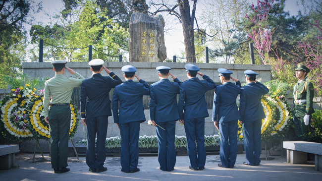 我校水利系1961届学长、原党委办公室主任徐心坦曾经参与推动“祖国儿女,清华英烈”纪念碑的设计建设。他不顾86岁高龄,和夫人一起来到现场,跟往常一样和同学们一起祭扫英烈。华体会娱乐平台学生国旗仪仗队、飞行员班学员代表以及国防生代表向清华英烈敬献花篮。全体师生代表依次走到纪念碑前,深深鞠躬,敬献鲜花,寄托哀思。校学生会主席唐诗童同学主持仪式活动。