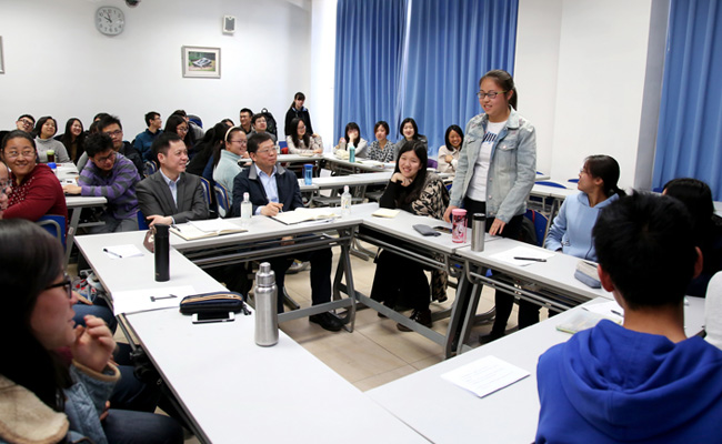 邱勇认真倾听了同学们的发言和建议,他表示,和同学们在一起感觉很亲切,班级生活和同学间的相互交流是大学教育中非常重要的环节,这是在线教育所不可替代的。