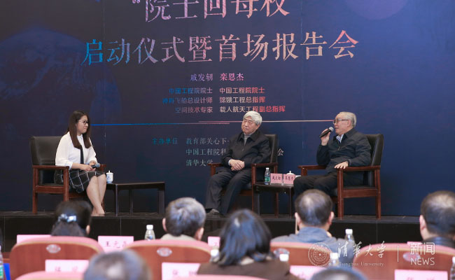 戚发轫和栾恩杰两位院士为现场师生做报告。记者 张宇 摄