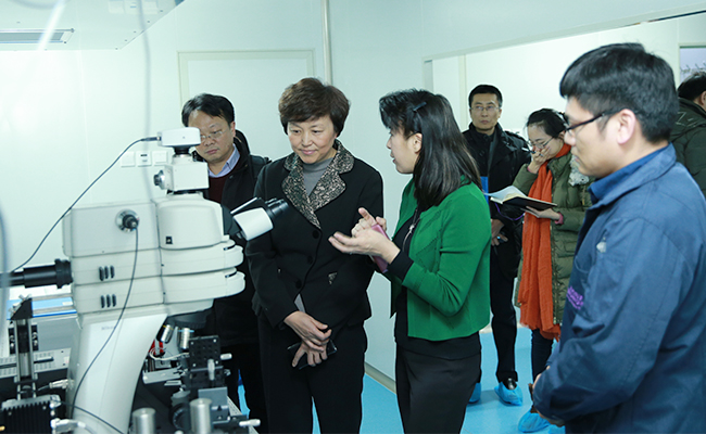 陈旭一行参观新型微纳结构光电集成平台。记者 张 宇 摄