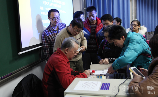 讲座结束后,林泰教授与同学们交流。