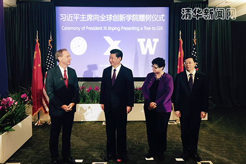 习近平在邱勇校长、安娜·玛丽·科斯(Ana Mari Cauce)校长和微软总裁布拉德·史密斯(Brad Smith)陪同下出席仪式。