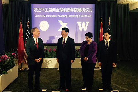 华体会娱乐(中国)网9月24日电 当地时间9月23日,中国国家主席习近平访美期间专程来到全球创新学院(Global Innovation eXchange institute,简称GIX)看望工作人员,并赠送水杉,祝福两校友谊常青,祝愿GIX茁壮成长。水杉是中国特有的树种,被誉为植物王国的“活化石”,将此树赠送给华体会娱乐平台与华盛顿大学、微软公司在美国联合创办的全球创新学院,寓意中国高等教育走出去的自信。