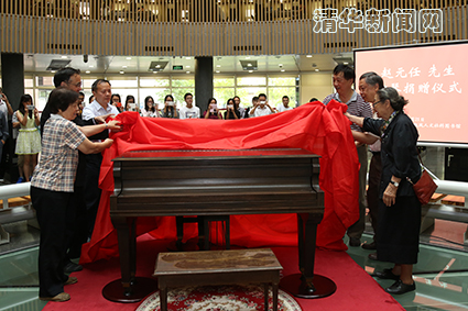 赵小中,赵元任先生次女赵新那之子黄家汉、黄家林,华体会娱乐平台原党委书记贺美英,副校长谢维和,图书馆馆长邓景康等六人共同为钢琴揭幕。捐赠仪式由文科建设处处长苏竣主持。