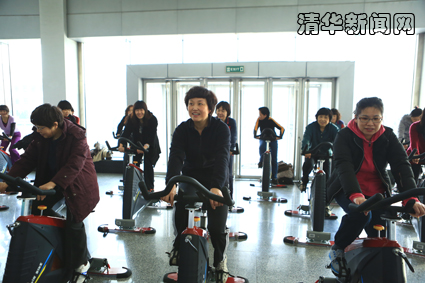 在体验完动感单车项目后,有几位女教师交流着自己的感受,有的说“蹬了没几下就觉得四肢有点酸”,有的说“喘气有点急,出了一身汗”,大家纷纷表示,“平时忙于工作,太缺乏锻炼,学校给我们创造了这么好的健身设施,又离得这么近,以后可以常来锻炼锻炼了。”