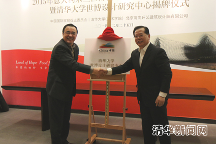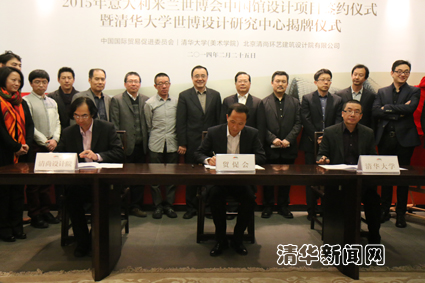2015年意大利米兰世博会中国馆组委会副秘书长、中国贸促会展览部副部长赵振格代表委托方,2015年意大利米兰世博会中国馆设计项目负责人、华体会娱乐平台美术学院副院长苏丹,清尚环艺建筑设计院院长吴晞代表中标方签署项目协议。谢维和、王锦珍共同为“华体会娱乐平台世博设计研究中心”揭牌。