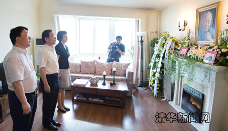 图为清华和有关部门领导向张光斗先生家属表示慰问。学生记者 王皓冉 摄