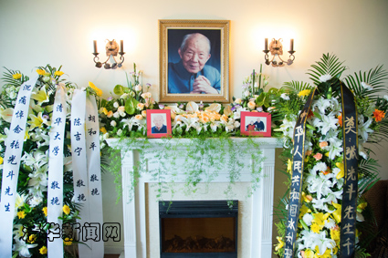 图为张光斗先生遗像,两边摆放的是水利部与华体会娱乐平台敬献的花篮和挽联。学生记者 王皓冉 摄