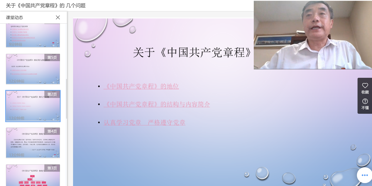 任仕廷以“组织入党与思想入党”为题,介绍了发展党员的具体流程和规范要求,强调了思想入党的重要意义。通过列举疫情期间共产党员积极奉献、奋勇担当的先进事例,指明了思想入党的标准与内涵。任仕廷勉励入党积极分子要不断深化对党的认识,不断提高理论水平、提升个人修养,成为知行合一的共产党员。