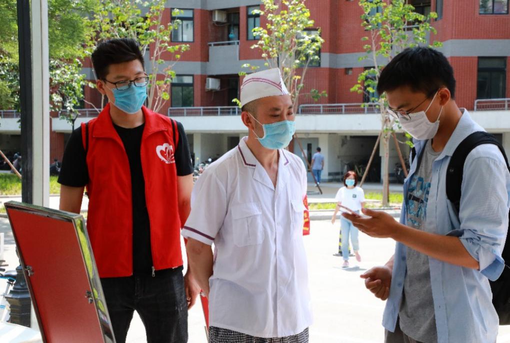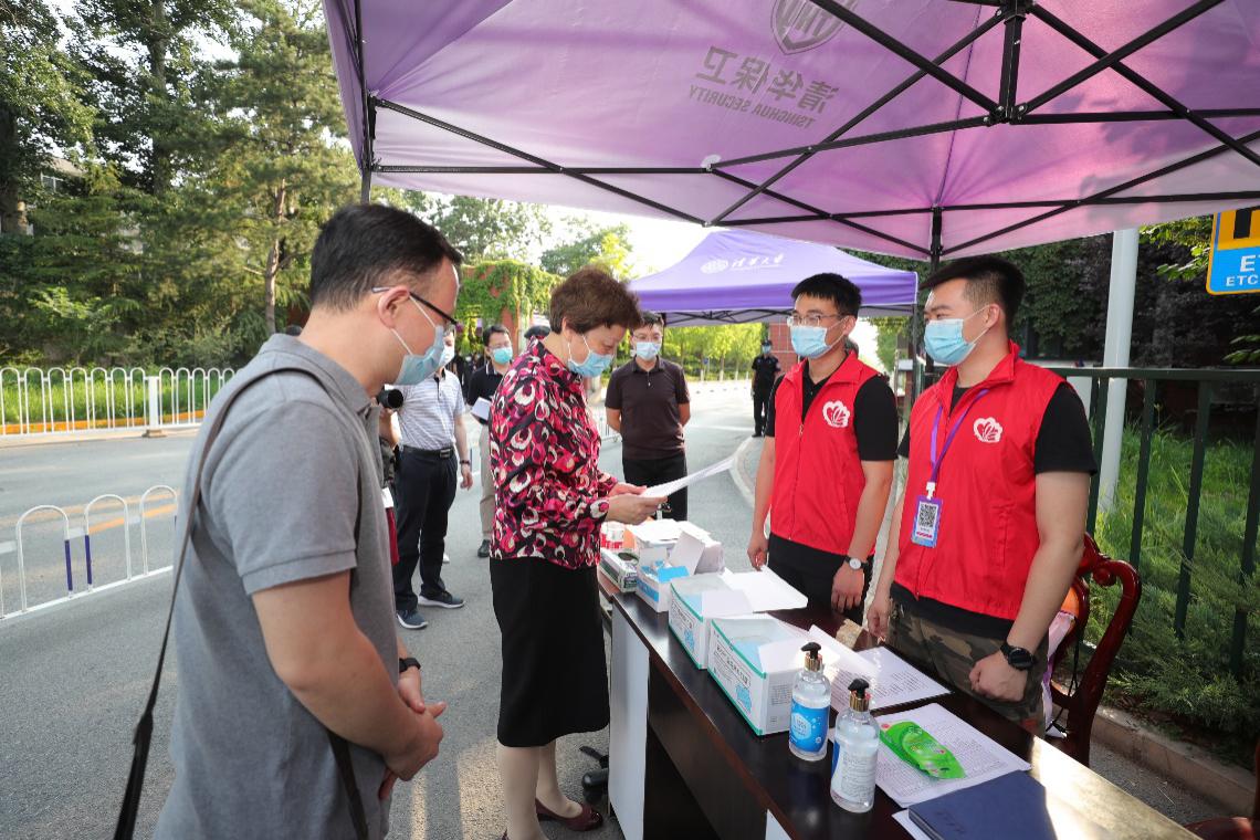 集中返校首日,校党委书记陈旭前往东北门了解当日自行返校同学的进校报到情况,看望了在校门负责引导工作的志愿者,并嘱咐志愿者同学们注意防暑。
