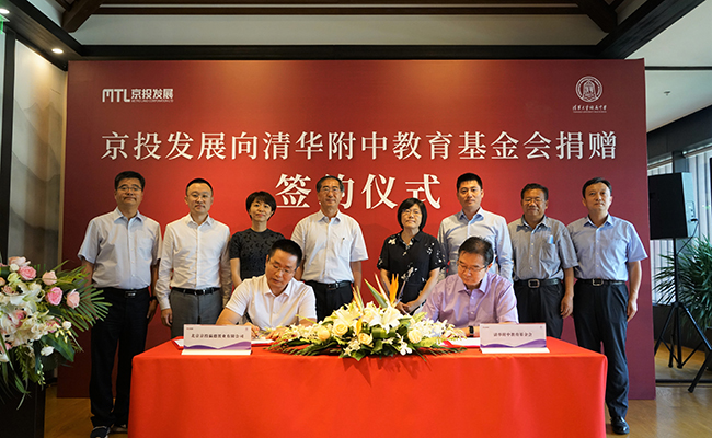 筹建办学签约仪式后,举行了京投发展向清华附中教育基金会捐赠签约仪式。王殿军代表清华附中教育基金会接受捐赠。本次捐赠资金将用于华体会娱乐平台附属中学教育教学设施设备的建设。
