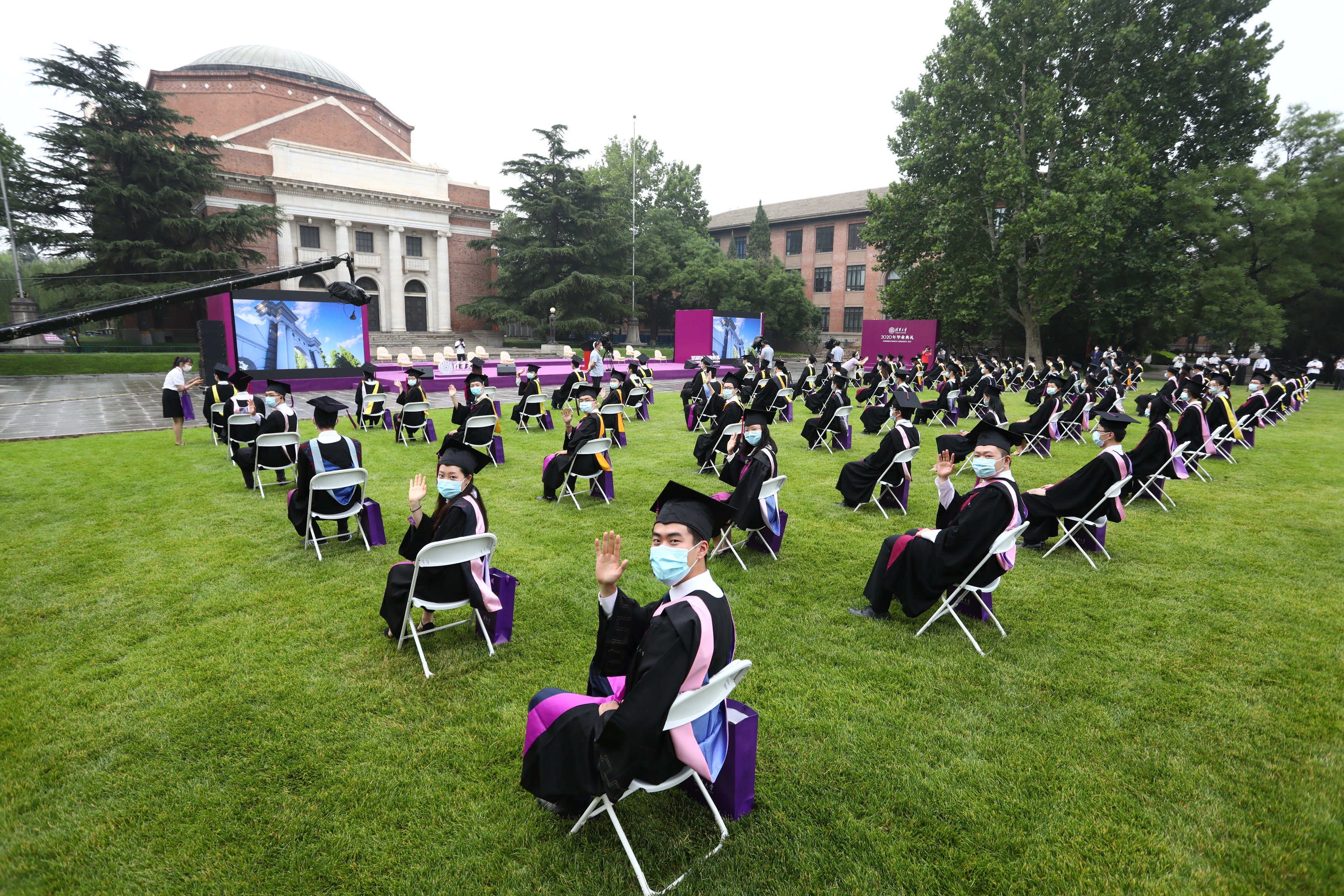 特殊的“云毕业典礼”面向全球进行中英文双语直播,将五湖四海的深情汇聚,将五彩斑斓的青春铭记。蓝天、绿草、白椅,和随处可见的“清华紫”交织成一幅梦幻般的画卷。大礼堂前、荷塘畔、西大操场上,我们致敬青春,感谢过往,畅想未来。温馨打造的16处典礼会场,满载着收获的喜悦,洋溢着烂漫的笑容。线上、线下,世界各地的清华师生同频共振、心意相连。