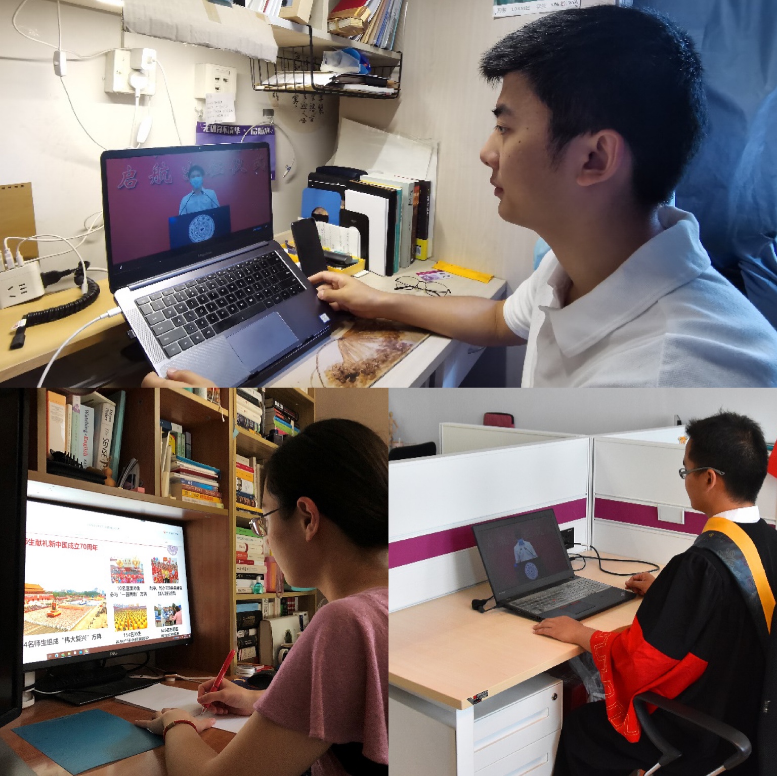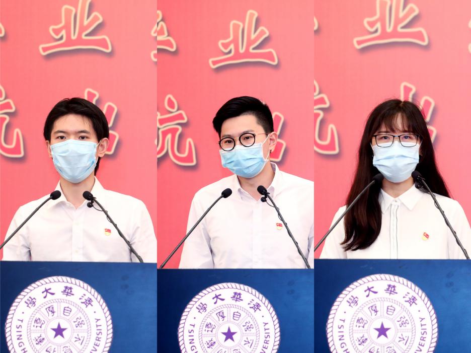 新闻学院本科毕业生黄一洋、计算机系硕士毕业生刘梦旸、土木系博士毕业生胡黎俐作分享发言。疫情期间,黄一洋因拍摄纪录片滞留武汉,他用镜头记录了防疫一线基层组织、普通家庭和志愿者们的抗疫行动;刘梦旸来自湖北省红安县,曾亲身参与抗疫一线的志愿者工作,毕业后计划前往家乡基层公共部门工作;作为汶川地震亲历者,胡黎俐立志“服务国家需求,建设安全家园”,就读期间共发表论文20篇,授权专利4项,研究成果被国家行业标准采用,毕业后将赴上海交通大学任教。他们纷纷表示,将永葆初心、砥砺前行,以行胜于言的态度踏实走好每一步,让青春在党和人民最需要的地方绽放绚丽之花!