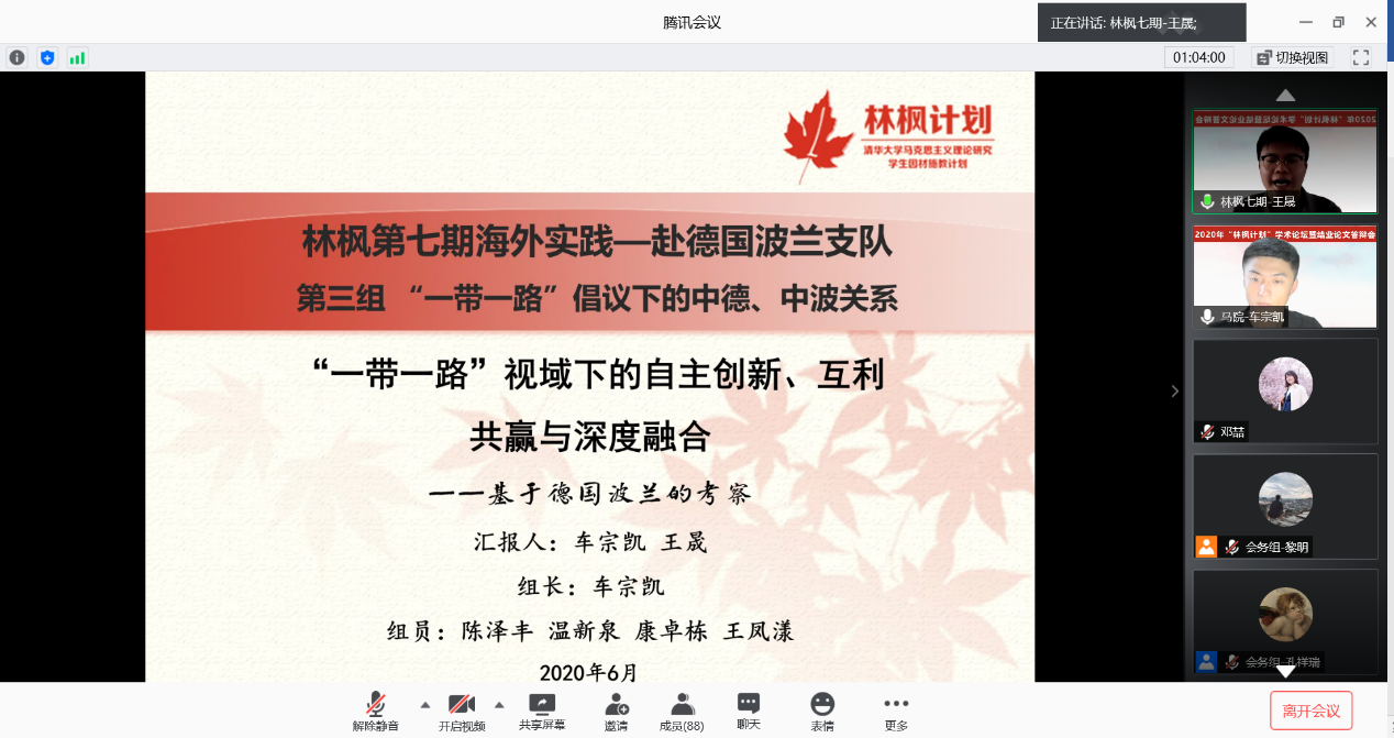 在论坛开幕式上,与会师生就2020年初“林枫计划”第七期赴德国、波兰海外实践进行了充分讨论,三组学员围绕马克思主义发展史、比较政治视野下的中国道路、“一带一路”倡议下的中德、中波合作现状与前景汇报了调研成果。王雯姝充分肯定了同学们实践调研的收获,认为实践报告体现了清华学子的深度理论思维能力。王峰明认为此次实践实现了从课堂、书本到现实的转化,并强调对现实案例的思考可以更加深入、更加体现马克思主义的立场观点方法。