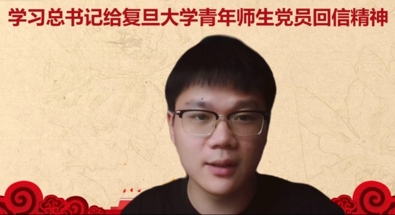 会上,白本锋首先对回信背景及内容进行了介绍。与会师生深入学习了习近平总书记给复旦大学青年师生党员回信精神,深受鼓舞和启发,并结合疫情期间的自身工作和理想信念,交流了自己对习近平总书记回信精神的认识和理解。