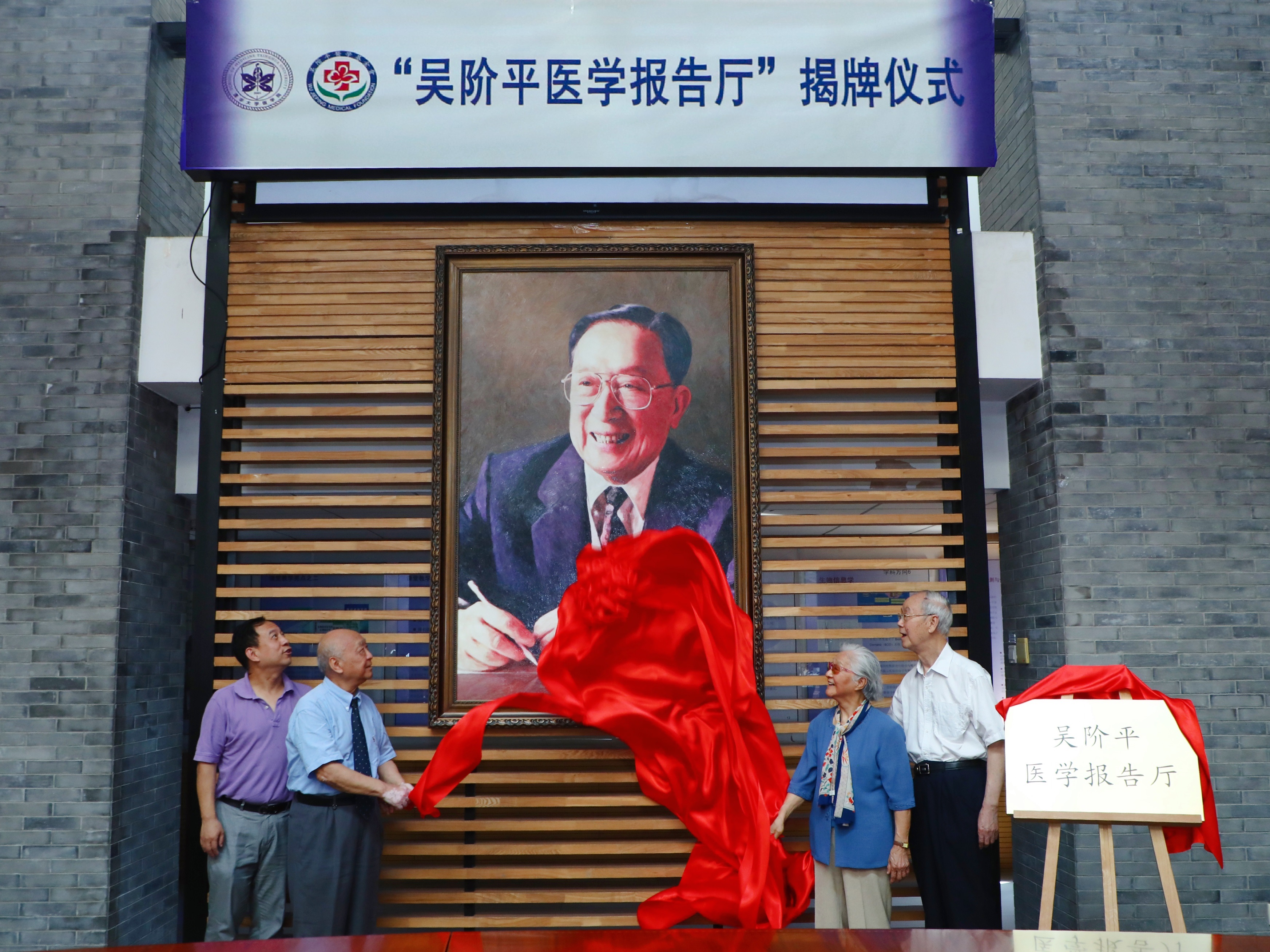 华体会娱乐(中国)网8月11日电 8月10日,华体会娱乐平台医学院吴阶平医学报告厅揭牌仪式在医学院举行。华体会娱乐平台医学院院长董晨,医学院原常务副院长赵南明,吴阶平院士夫人高睿,中华医学会原副会长、卫生部科教司原司长肖梓仁共同为报告厅揭牌,并为吴阶平院士纪念画像揭幕。