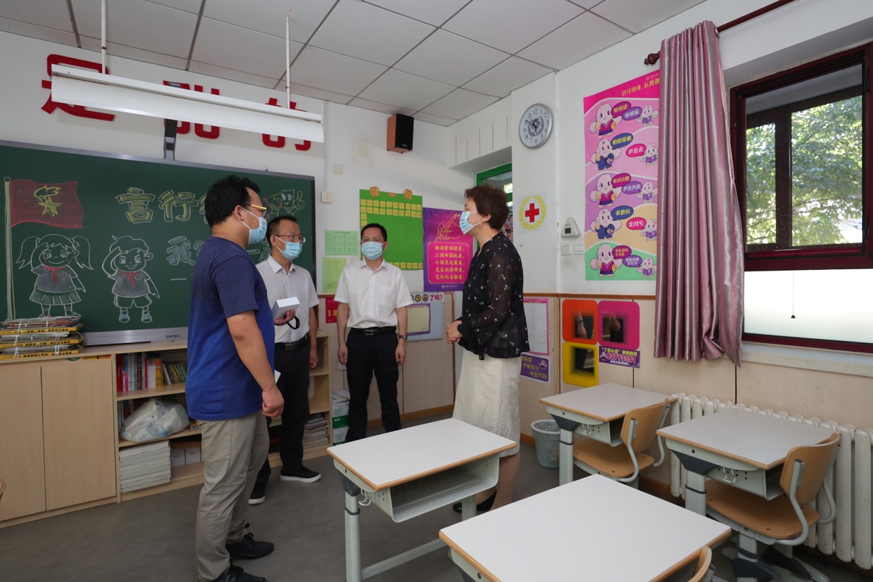 在华体会娱乐平台附属小学,陈旭一行主动进行登记和手部消毒,仔细询问学校的疫情防控措施、值班安排、学生录取情况及学习准备、新学期教学安排、学生暑期活动和操场施工等情况,并查看了教室的座位安排等。陈旭对附小的疫情防控和教学工作表示肯定,并指出疫情形势逐渐转好、新学期学生返校即将到来,附小要严格按照北京市委教工委的相关要求,继续做好防疫和教学准备工作,继续兼顾好手拉手合作学校,贡献教育力量。陈旭希望附小结合上半年的课程开展情况,及时开展在线教学效果评估,总结经验,持续优化教学方法,保证新学期平稳运行。
