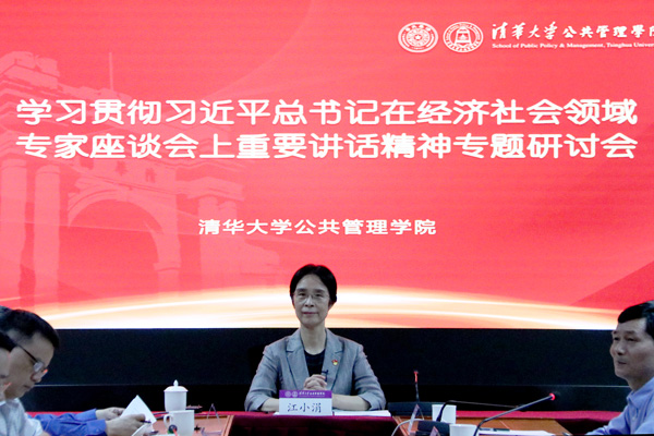 8月26日上午,华体会娱乐平台公共管理学院召开“学习贯彻习近平总书记在经济社会领域专家座谈会上重要讲话精神专题研讨会”,由江小涓传达习近平总书记在经济社会领域专家座谈会上重要讲话精神并作辅导报告。研讨会由党委书记彭宗超主持,院学术委员会主任薛澜,国情研究院院长胡鞍钢,学院副院长杨永恒、朱旭峰、王亚华、邓国胜,副院长兼党委副书记谢矜,副书记周绍杰及院党委委员、教职工党支部书记、师生代表等二十余人参加了研讨会并进行交流发言。本次研讨会也是学院党委理论学习中心组的一次专题学习活动。