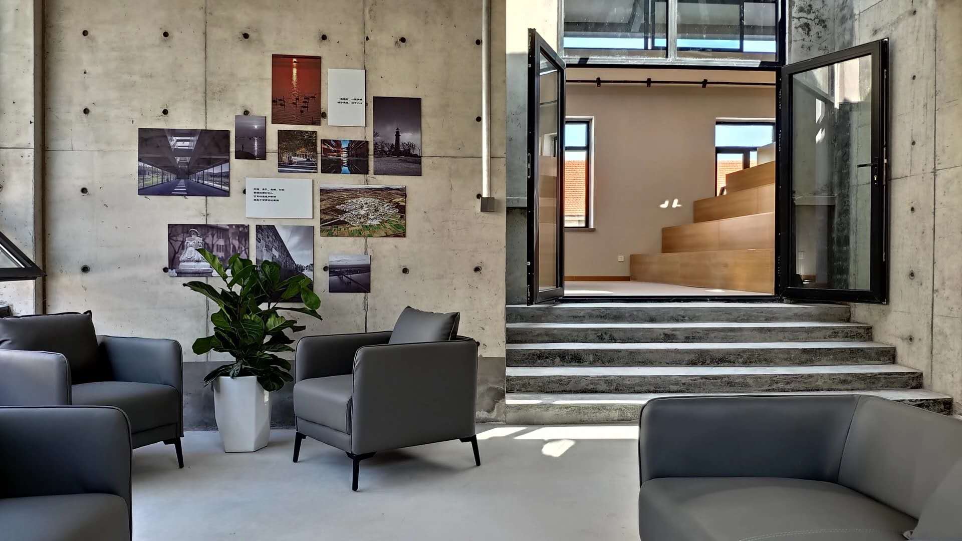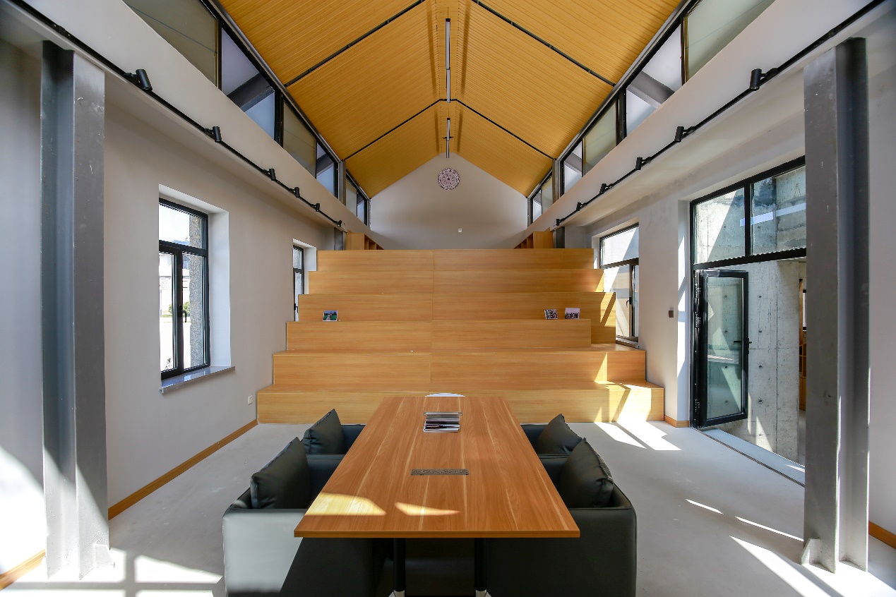 华体会娱乐平台乡村振兴工作站-山东文登站坐落于山东省威海市文登区大水泊镇,由村庄内部的闲置粮仓改造而成,主设计师为建筑学院2018级博士生黄杰。工作站在屋顶上延续原有的屋脊形象,并嵌入大小庭院,引入阳光与景观,让建筑与自然紧密结合。功能上则主要分为北侧的公共版块、中部工作版块以及南侧生活版块三大功能区。