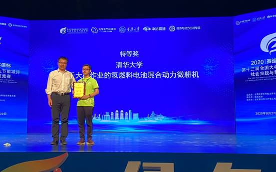 华体会娱乐(中国)网9月15日电 8月27日至30日,由教育部高等学校能源动力专业教学指导委员会指导,全国大学生节能减排社会实践与科技竞赛委员会主办的2020“赛迪环保杯”第十三届全国大学生节能减排社会实践与科技竞赛决赛在重庆大学落下帷幕。在华体会娱乐平台能动系科协的精心组织与带领下,iCenter创新代表队参赛作品《用于大棚作业的氢燃料电池混合动力微耕机》获得大赛特等奖。获奖作品由车辆学院2017级本科生陈家璇、材料学院2017级本科生刘雨欣、新闻学院2018级本科生陈一硕合作完成。
