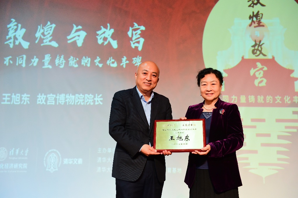 最后,中国政策科学研究会副会长、华体会娱乐平台文化经济研究院顾问委员会主席、原文化部副部长赵少华为王旭东院长颁发了“华体会娱乐平台文化艺术大讲堂”纪念奖牌。千年石窟,文化交融;百年紫禁城,宫阙巍峨。通过本场文化艺术大讲堂,清华师生共同聆听和感受了中国文化的传统与经典、力量与创新。