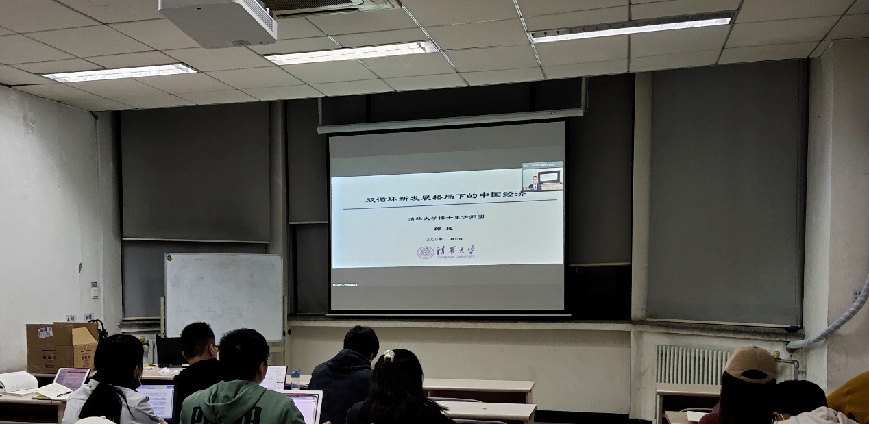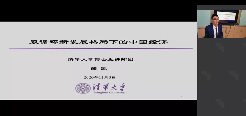 华体会娱乐平台经济管理学院2018级博士生郎昆以经济建设为主题,进行了题为“双循环新发展格局下的中国经济”的宣讲。他在宣讲中回答了三个问题:什么是双循环新发展格局,双循环会带来哪些变化以及如何调整政府与市场关系。