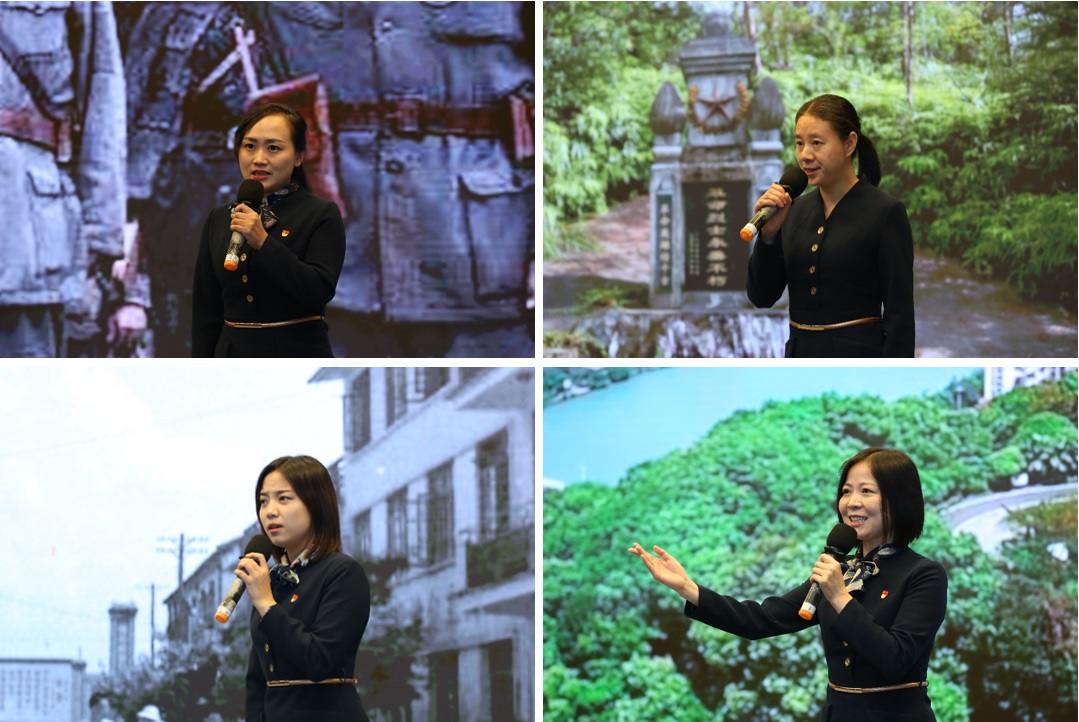 三明市纪委监委干部乐甦、三明市清流县文旅局干部曾丽红、三明市宁化县长征出发地遗址保护中心干部马行东、三明市人民政府驻深办主任林菲分别以“数字里的红色记忆”“曾家一门三烈士”“开国将军与农夫的故事”“建莲献给毛主席”为题,讲述了革命前辈们为了争取民族独立和人民幸福不惜流血牺牲,用生命和鲜血铸就共产党人信念与忠诚的感人事迹。