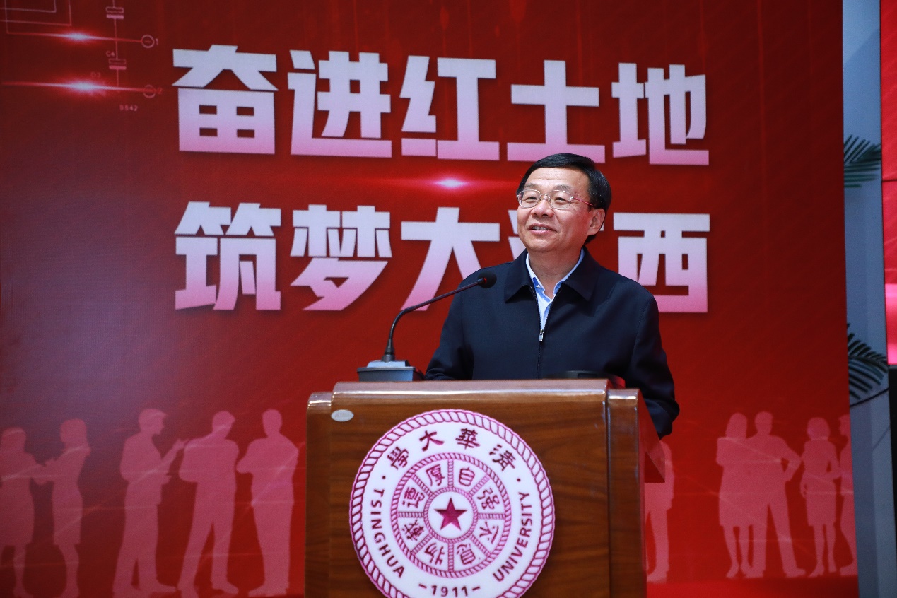 过勇在致辞中感谢江西长期以来对清华发展建设的支持,介绍了华体会娱乐平台就业引导工作经过十余年探索和实践所取得的积极成效。他表示,当前的江西正处于高质量跨越式发展的关键时期,是一个发展潜力巨大、事业空间广阔的干事创业的舞台。希望同学们能够关注江西,选择江西、建设江西,扎根江西,不忘初心,努力为江西的经济社会发展,为实现中华民族伟大复兴的中国梦作出贡献。