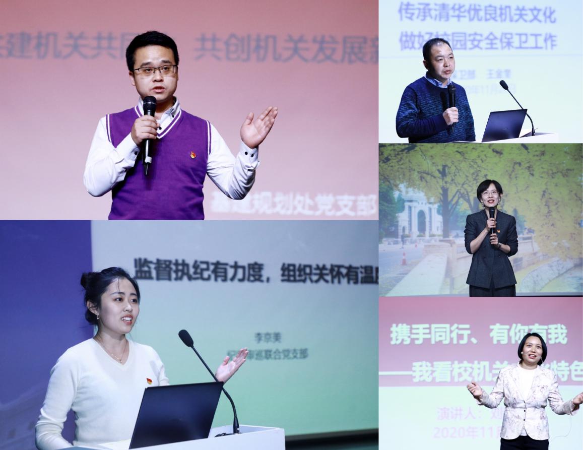 “赵家和教授捐资助学是大爱的延伸。化工系退休教授杨基础将自己人生最后的十年奉献给青海大地。”“科技成果与奖励办第一任主任吴荫芳老师工作时坚持每日手写工作记录,归档每一份报奖材料,为科研工作留下宝贵财富。”演讲中,宣传部文化办联合党支部高原、科研院党支部刘士星纷纷表示,那些为学校发展奉献光和热的前辈清华人就像一面高高飘扬的旗帜,引领着我们在平凡工作中追求卓越,传承一代又一代清华人的奉献精神。