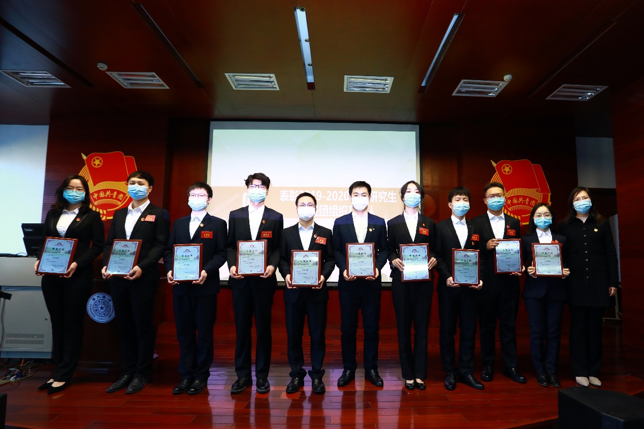 会议表彰了过去一年涌现出的先进集体和优秀个人,授予水利系研究生团总支等10个院系研究生团组织“2019-2020学年度华体会娱乐平台优秀研团”荣誉称号,授予机械系研究生团总支等4个院系研究生团组织“工作进步奖”荣誉称号,表彰林晨等10名研究生同学“优秀学生干部标兵”。赵岑宣读表彰名单,党委研究生工作部副部长钱婷、徐鹏、兰旻分别为获奖集体与个人颁奖。