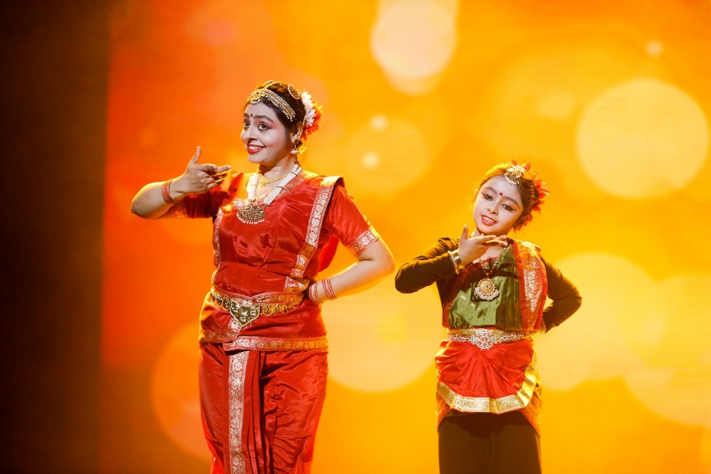 2020国际学生学者新年晚会上,印度学者Reshmita Nath与女儿表演舞蹈“Bharatanatyam”