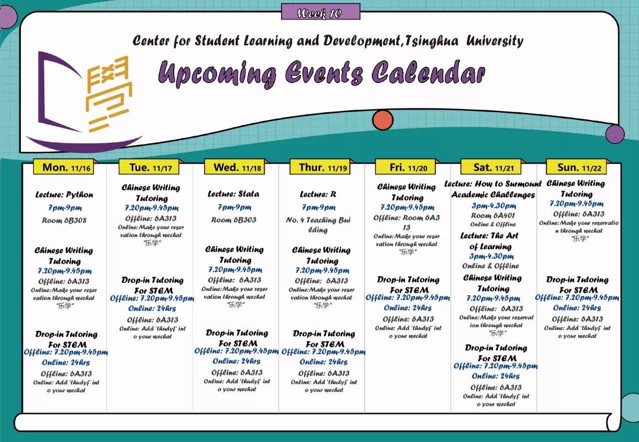 学生学习与发展指导中心每周辅导服务项目安排